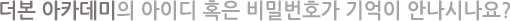 - 더 본 아카데미는 회원가입 시 최소한의 정보만 입력받기 때문에 일반적인 아이디/비밀번호 찾기로 회원정보를 찾을 수가 없습니다.