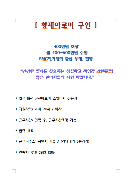 업무내용 전신아로마 스웨디시 전문점 근무형태 면접조정가능