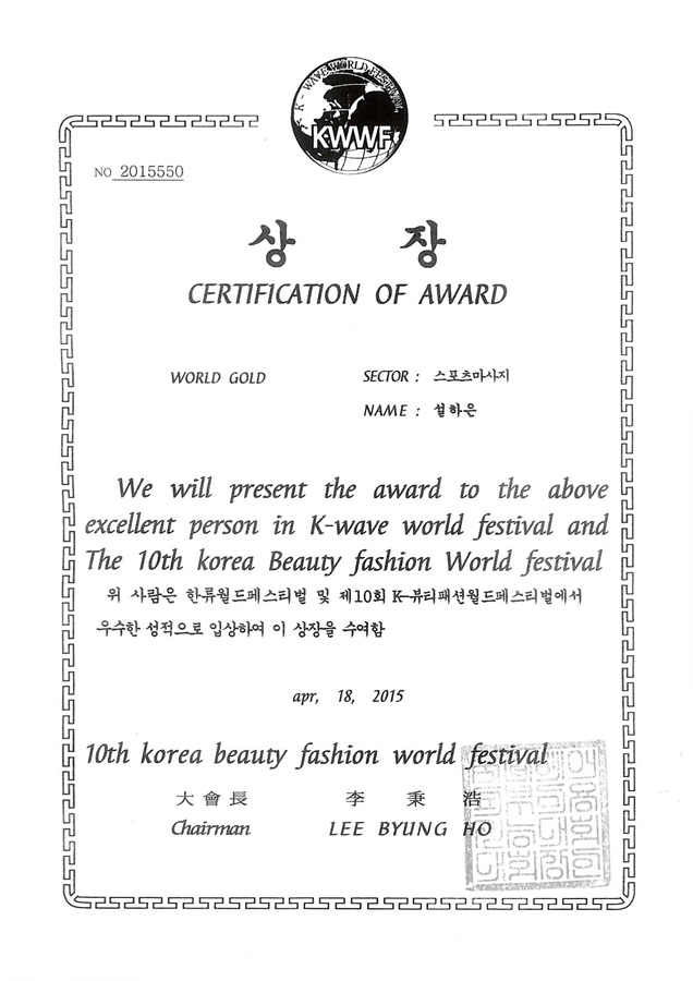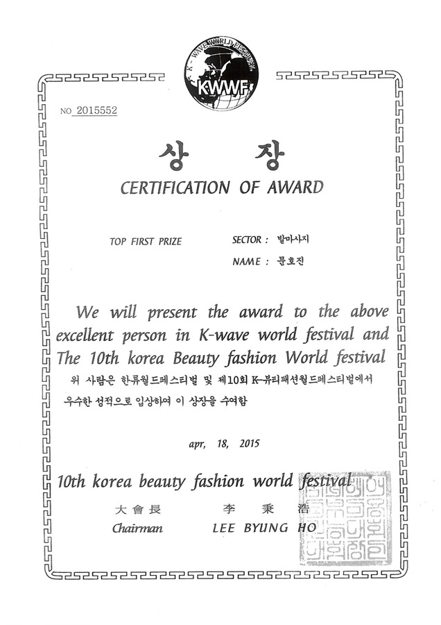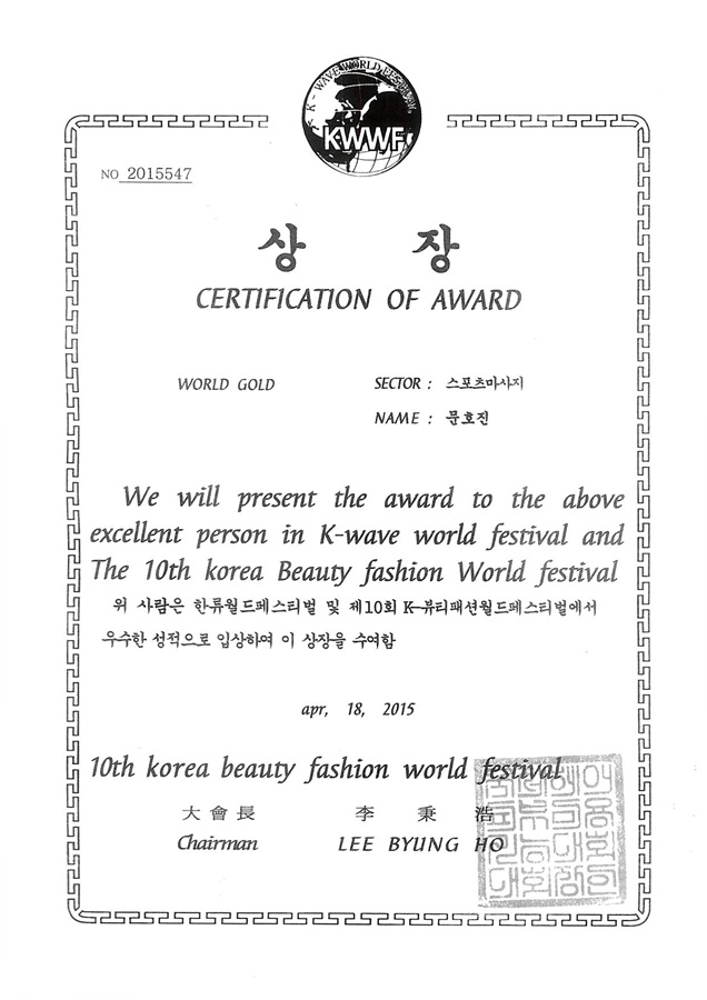 월드 금상 수상 스포츠마사지 부분 문호진님