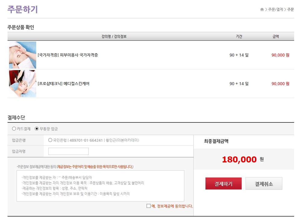 무통장 계좌 안내 국민 489701 - 01 - 664241 예금주 : 더본아카데미