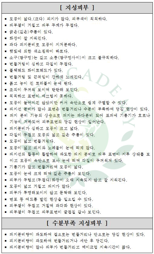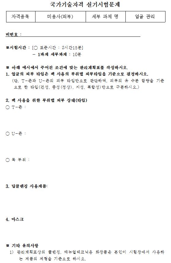 당일 날 시험장에서 얼굴부위별 타입에 대한 내용과 사용할 딥클렌징제를 지정