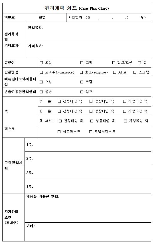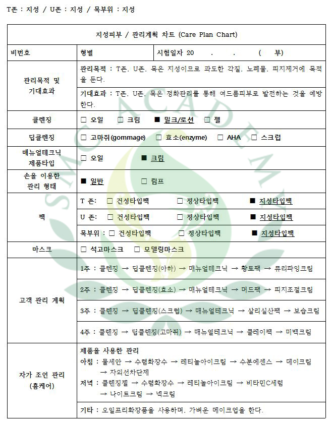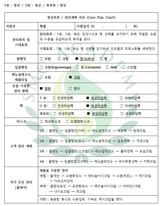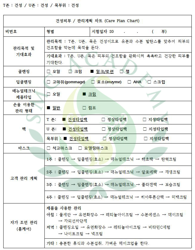 (당일 시험장 측에서 제시함)하면 그에 따른 피부관리 계획표를 작성하게 되며,