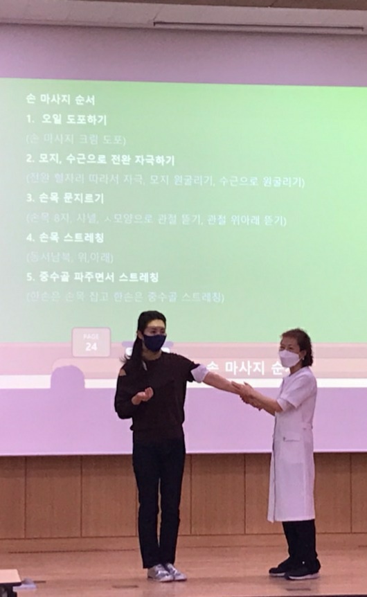 수강자 현장 : 핸드마사지 실습 진행순서