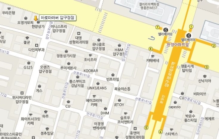 버스 이용 시 : 분당선 압구정 로데오역 6번출구(도보2분)