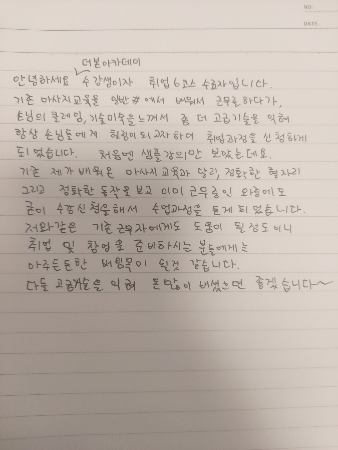 스웨디시,아로마경락,스포츠마사지,발마사지 수료하였습니다^^